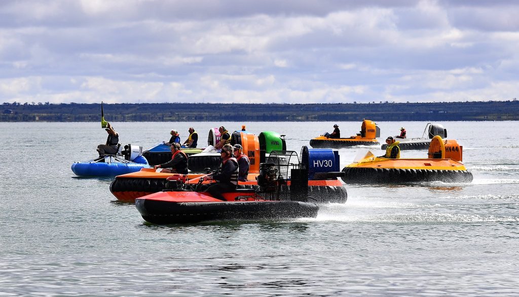 The first official national rally or `Oz Hover’ was held in January 1985 at Lake Hindmarsh in Victoria. These became an annual event and were held Australia Day long weekend. Over time the date and frequency changed to be a bi-annual event held in September. What did not change however was the enjoyment and celebration of hovercraft, the sharing of ideas, progress and new builds and the fun and social atmosphere of the event.